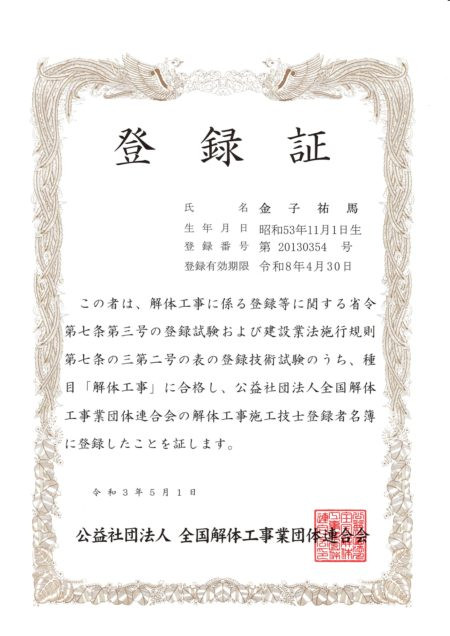 解体工事施工技士登録