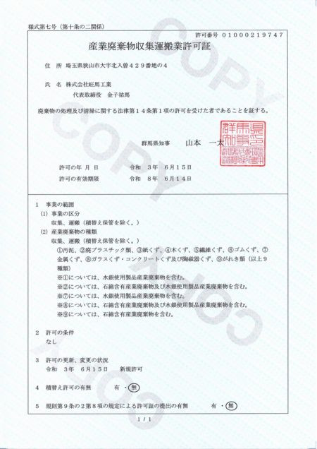 産廃許可(群馬)