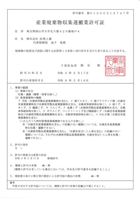 産廃許可(埼玉)