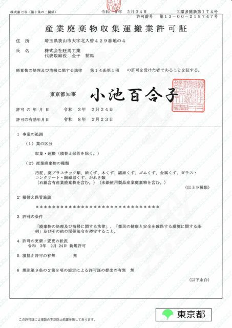 産廃許可(東京)