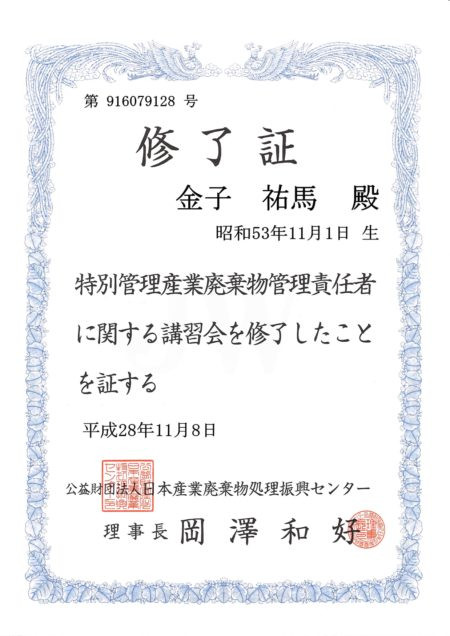 特別管理産業廃棄物管理責任者