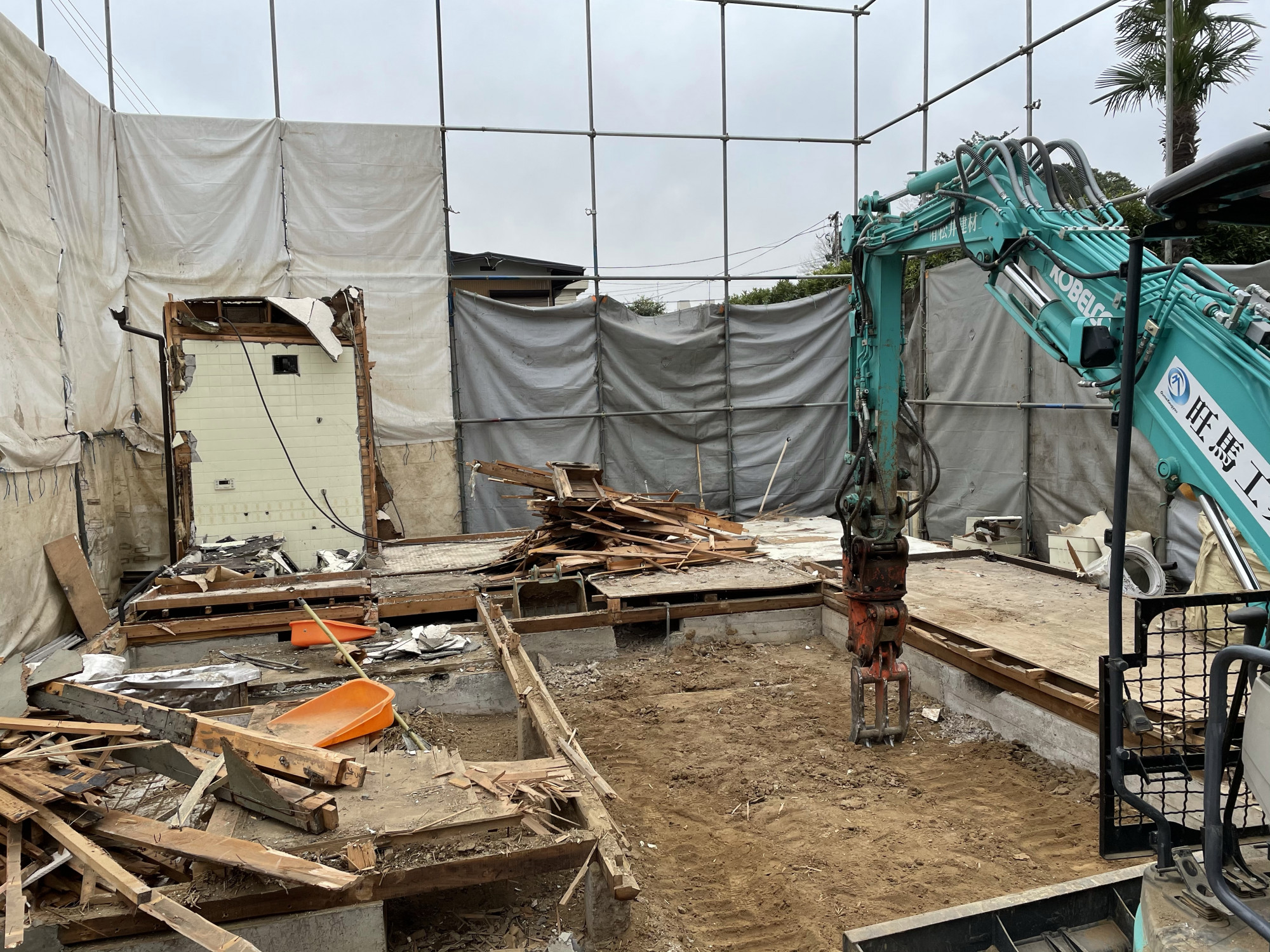 重機を搬入して建物の取り壊し作業を行いました。