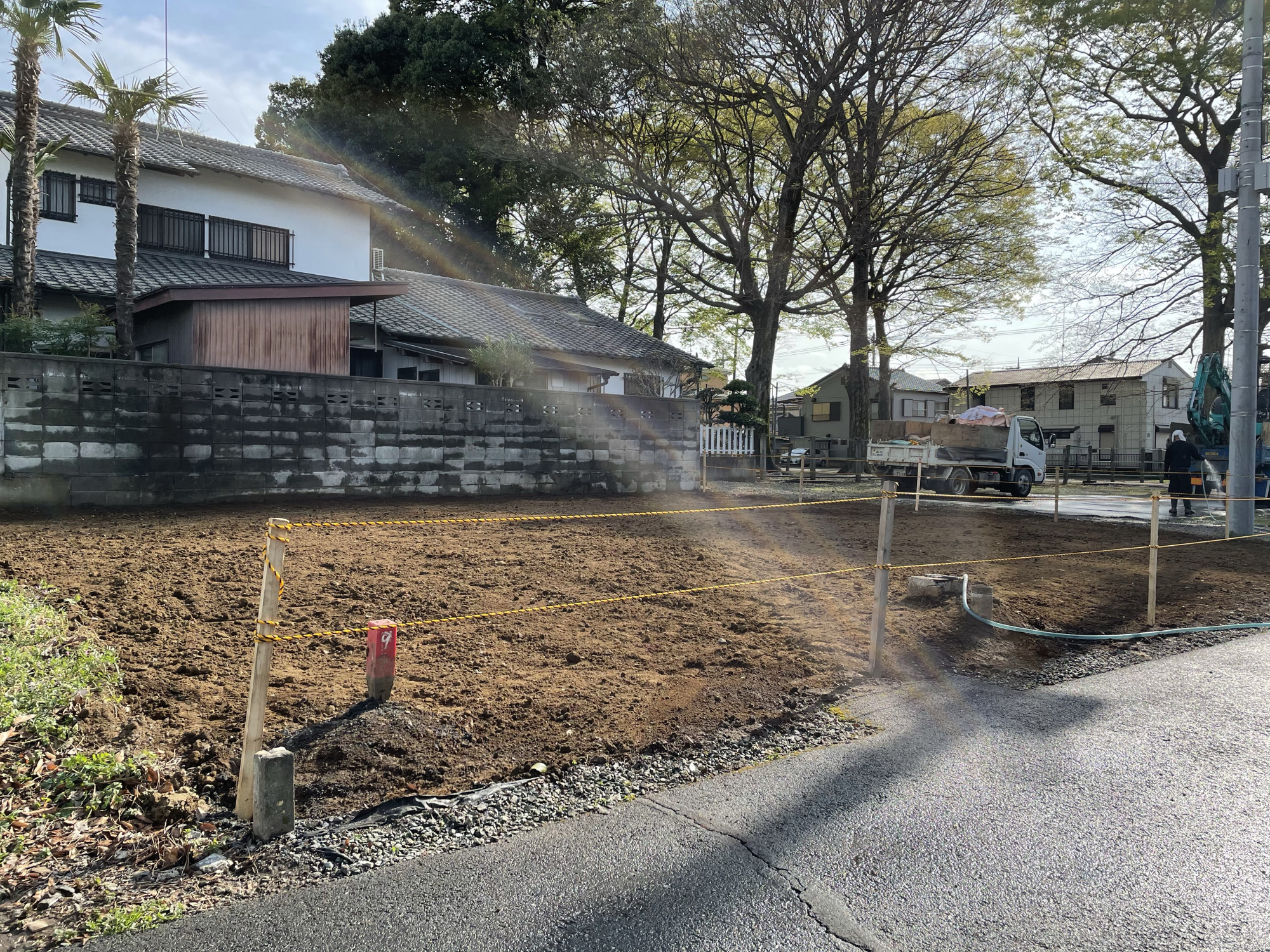 今回は川越市にある中院さんのお寺の敷地内での作業を行わせていただきました。ちょうど中院さんの桜が咲き始めた頃で、とてもきれいな景色をみることができました。