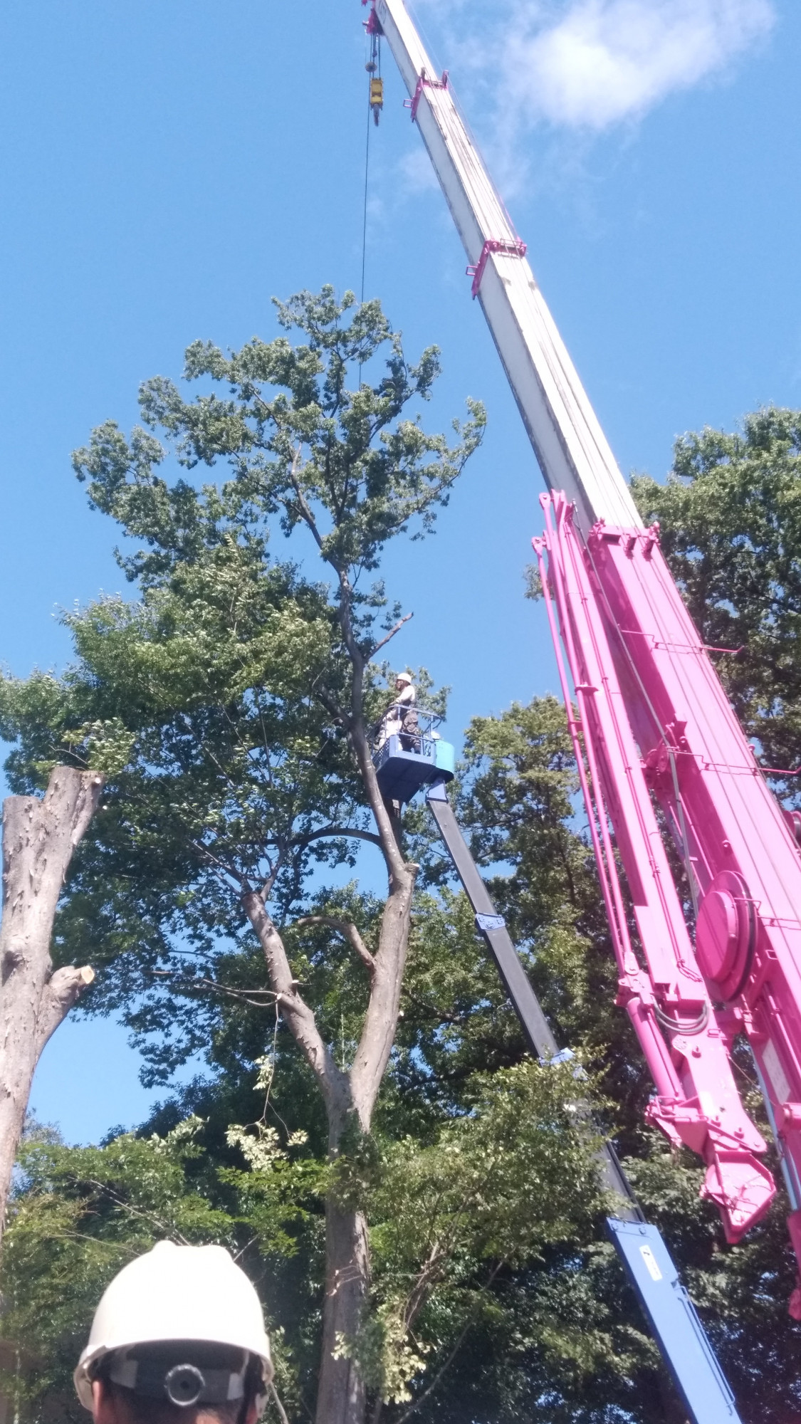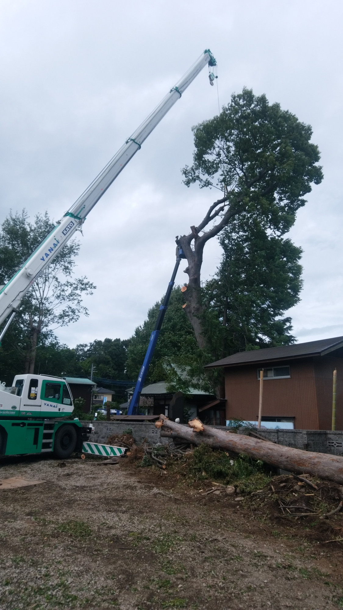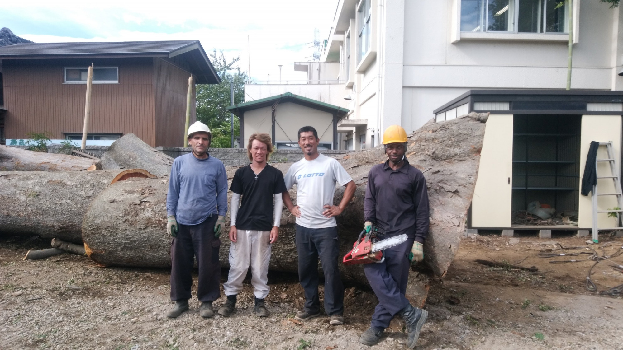 伐採工事ではたくさんの樹木とケヤキの木が5本あり、そのうちのひとつがとても大きなケヤキの木で驚きました。無事に作業も終わりとても良い経験になりました。