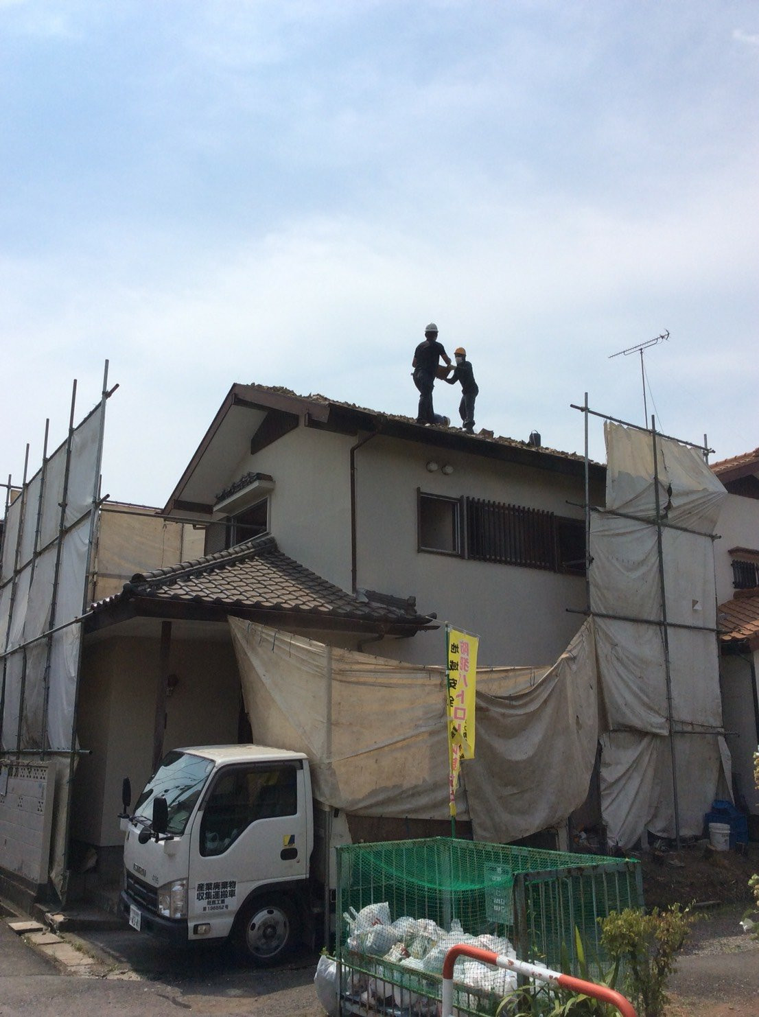 真夏の屋根瓦撤去作業はとても暑さが身にしみる作業でした。暑い日もまだまだ続きますが頑張っていきましょう!