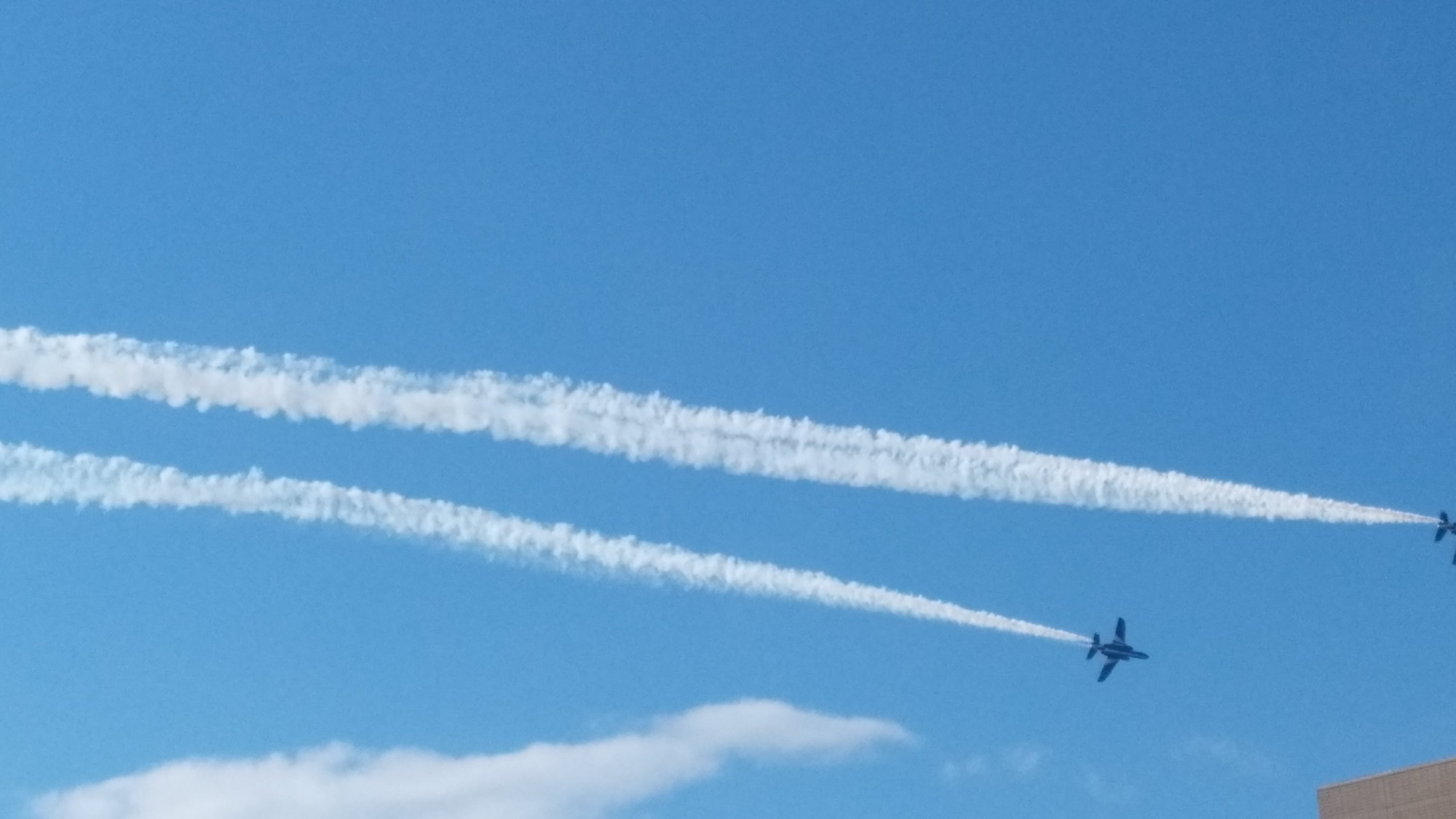 ブルーインパルスの飛ぶ姿に仕事中、見とれてしまいました。