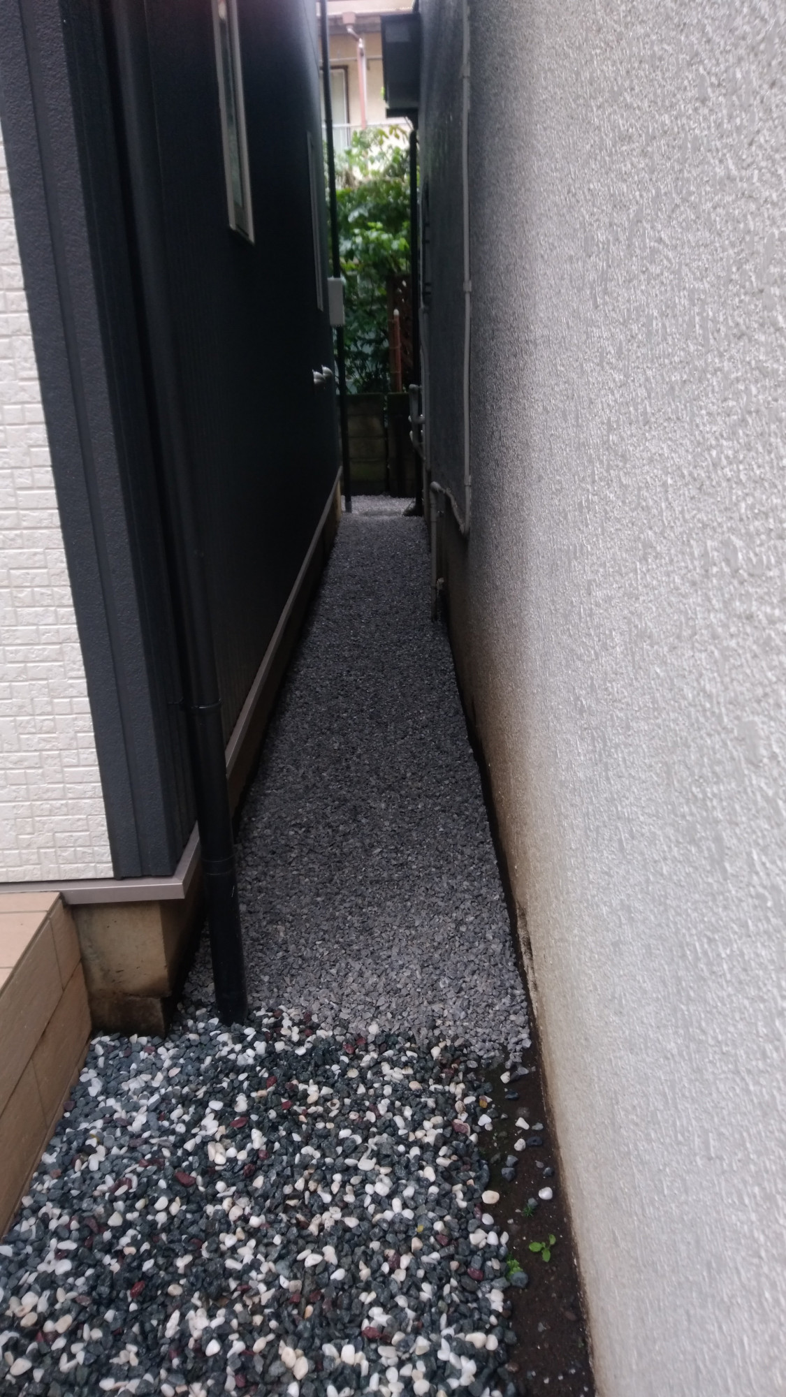 練馬区豊玉で建物の周りに砂利の搬入作業をやりました。