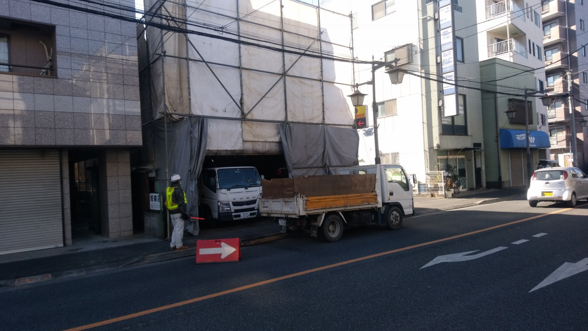 今回は、とても車通りの多い場所での解体工事でした。