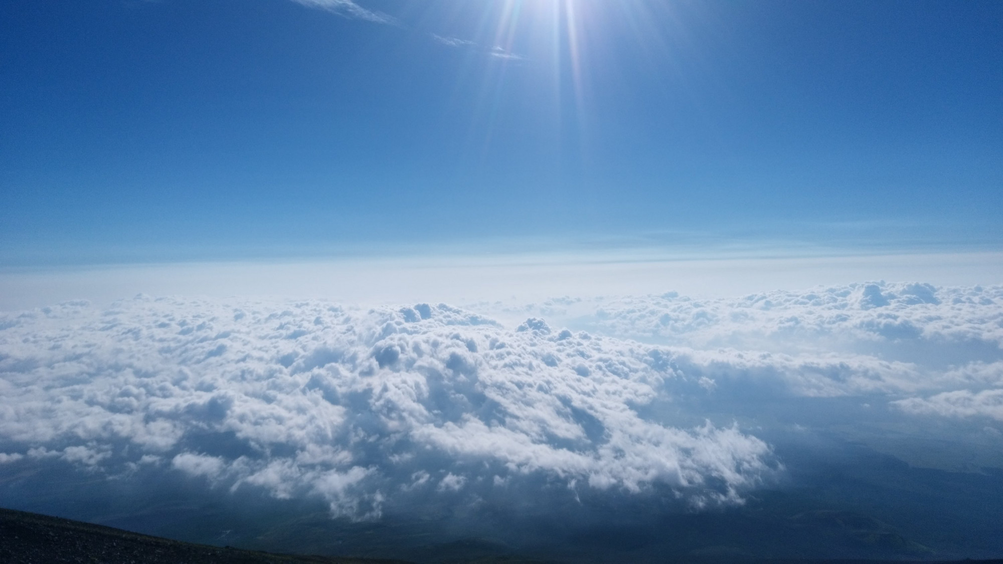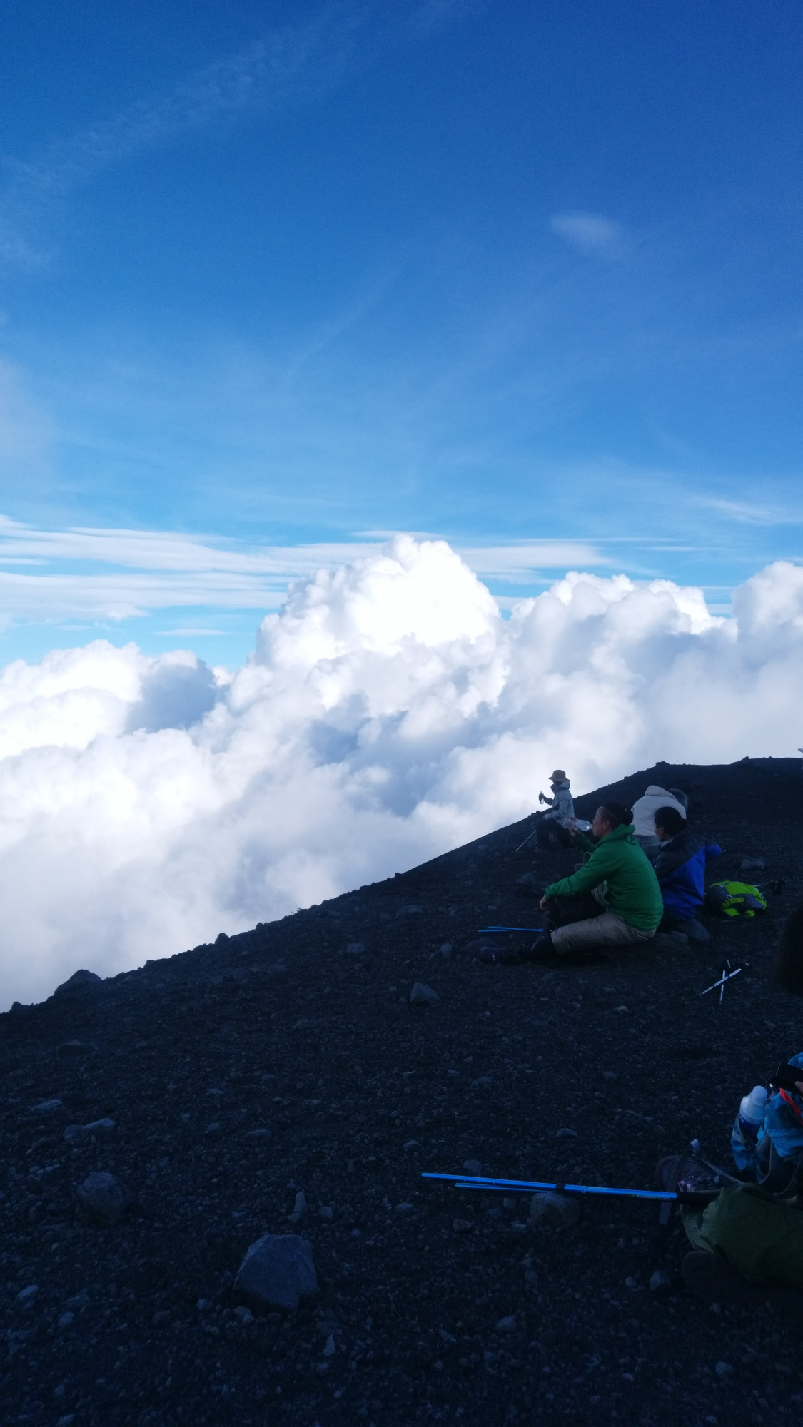 富士山から日の出をみようと1泊2日で行って来ました。最初は標高が高いからすぐに息切れをしました。日が沈むと夏でも富士山はとても寒くなり風が寒さを倍増させました。これもまた良い経験になりました。